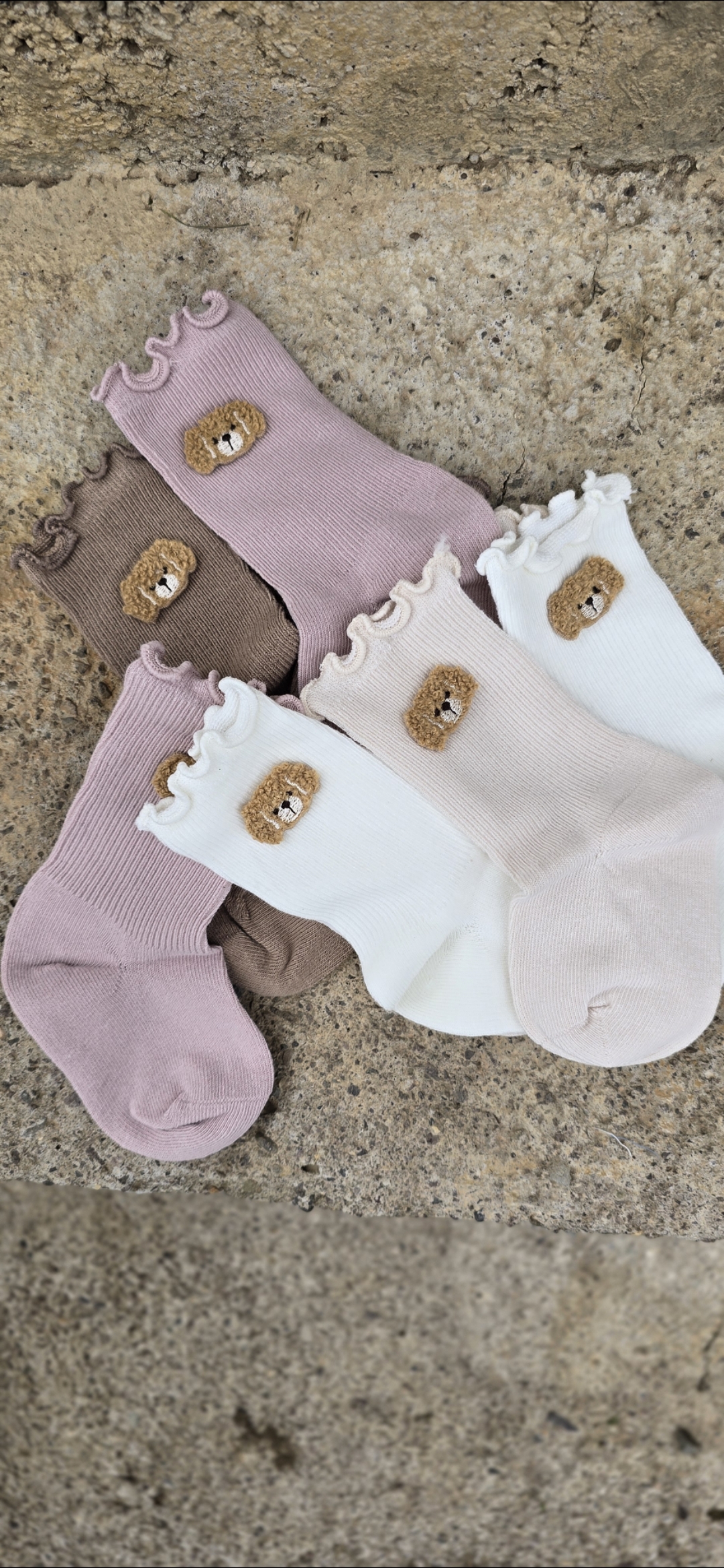جوراب لبه چین دخترانه با استیکر تدی جنس نخ پنبه وارداتی و مناسب برای 4 فصل سایز مدیوم مناسب برای 1تا 3سال