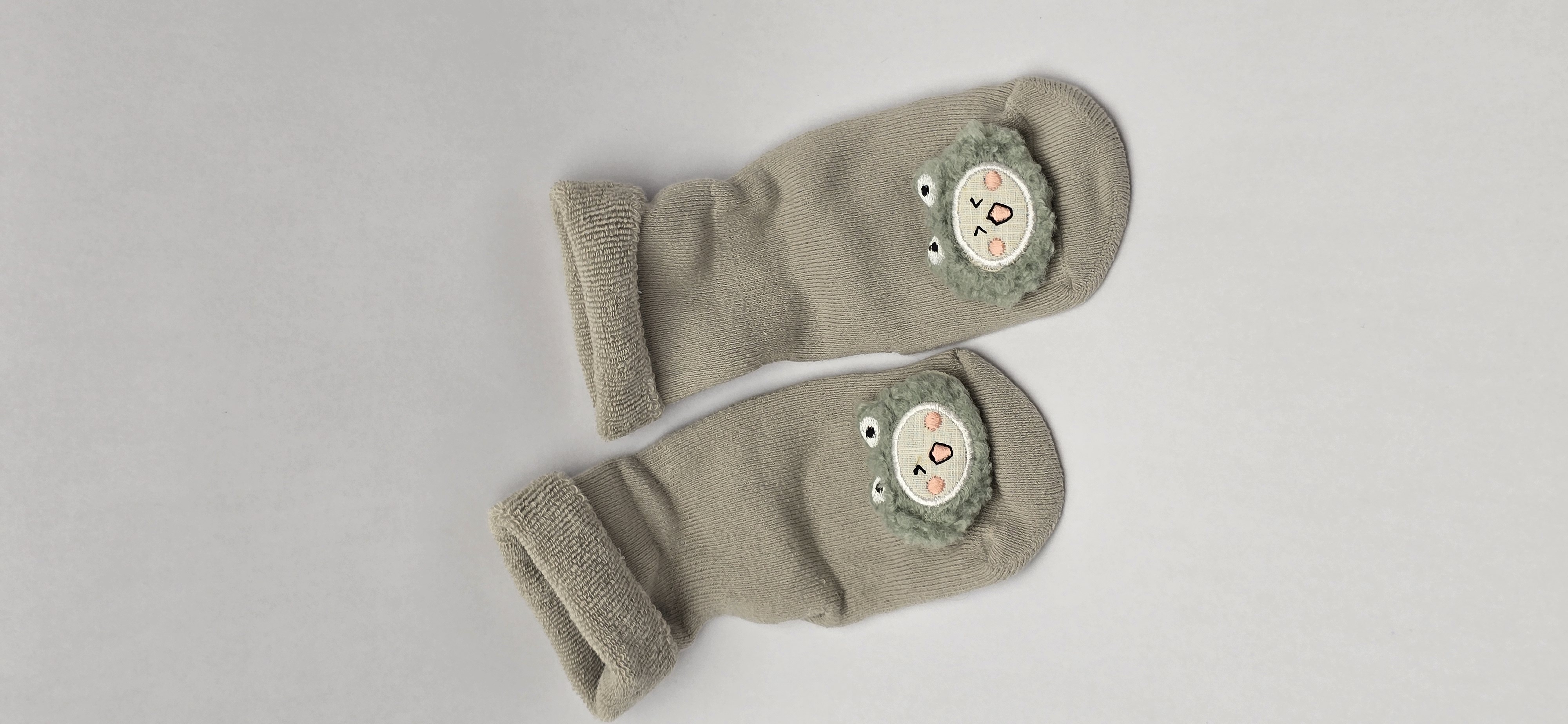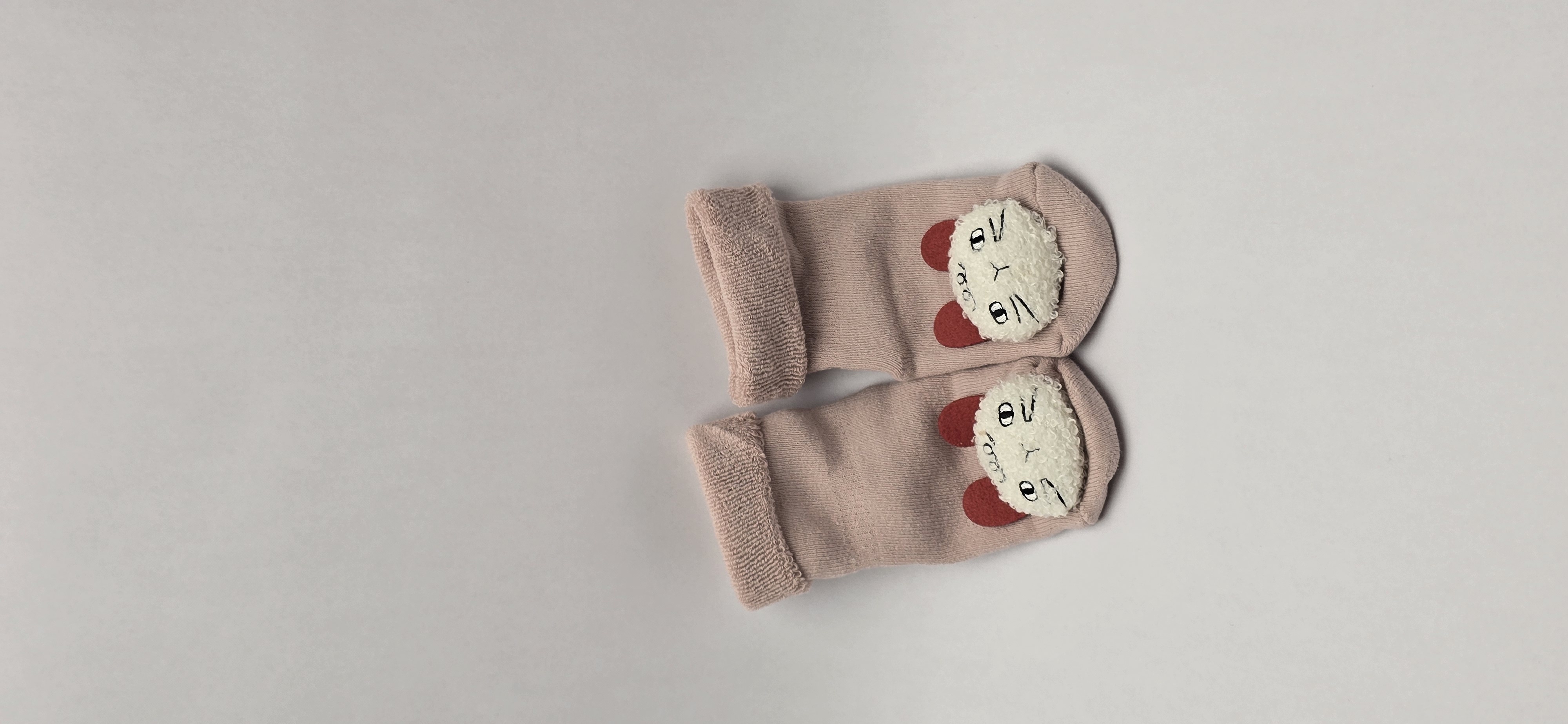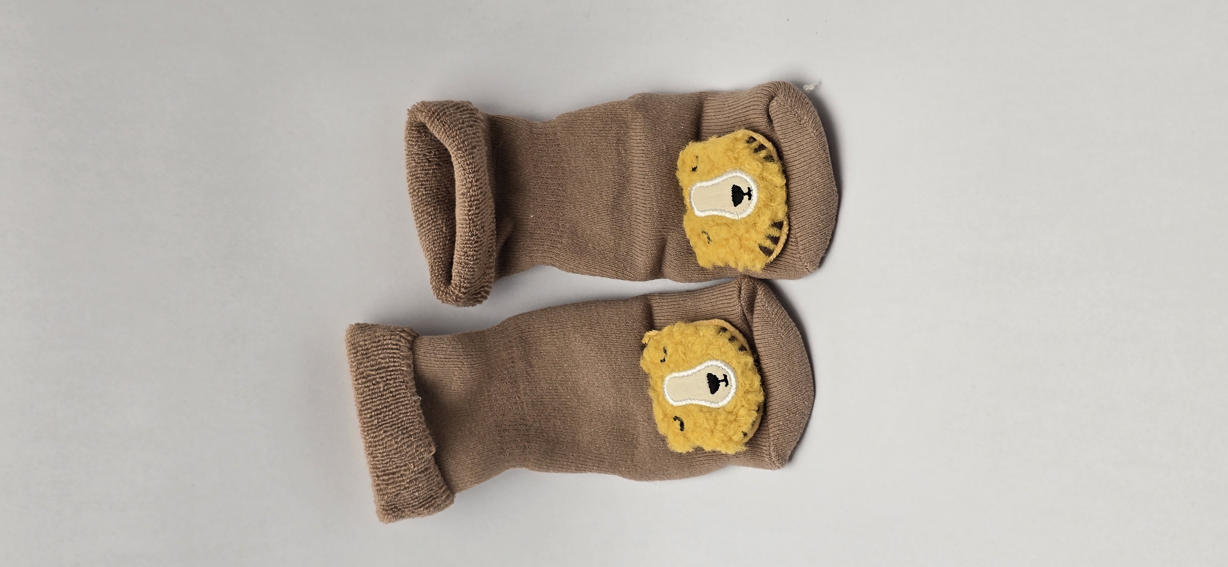 جوراب حوله ای بچگانه نیم ساق با عروسک برجسته مناسب سن ۱تا ۴سال داخل پشمی با لبه های برگردون کف استپ دار اسپرت