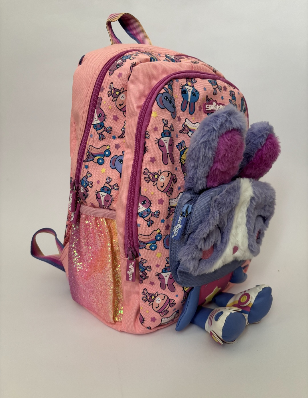 کوله پشتی اسمیگل با عروسک برجسته خرگوش مناسب مهد و پیش دبستانی ابعاد38 در 40 برزنتی و قابل شستشو و ضد آب مقاوم وارداتی و اورجینال