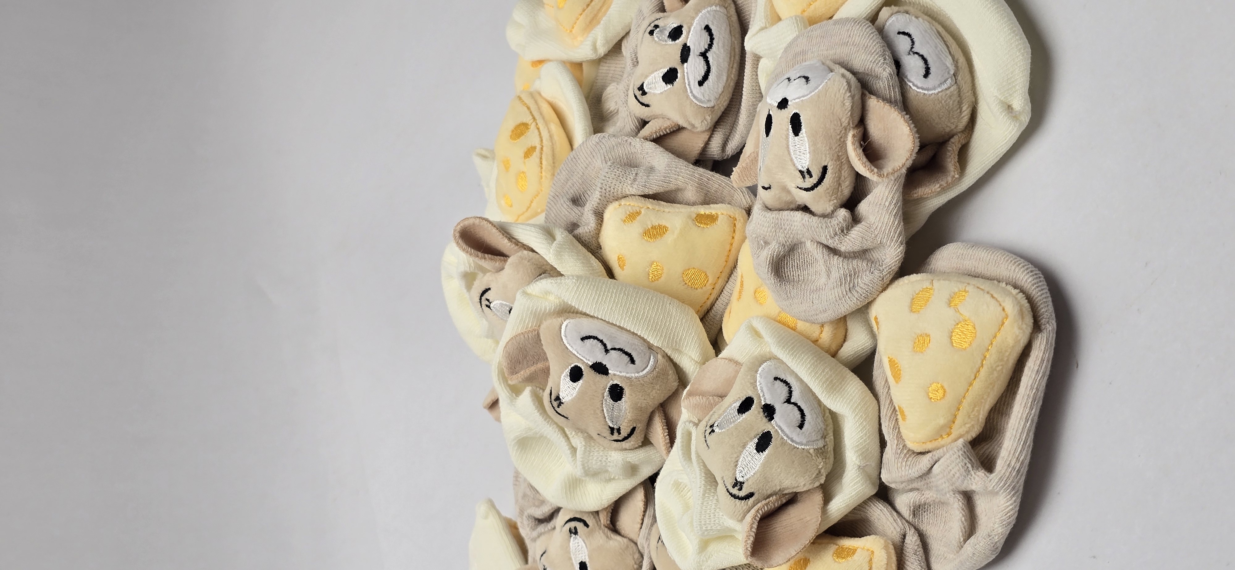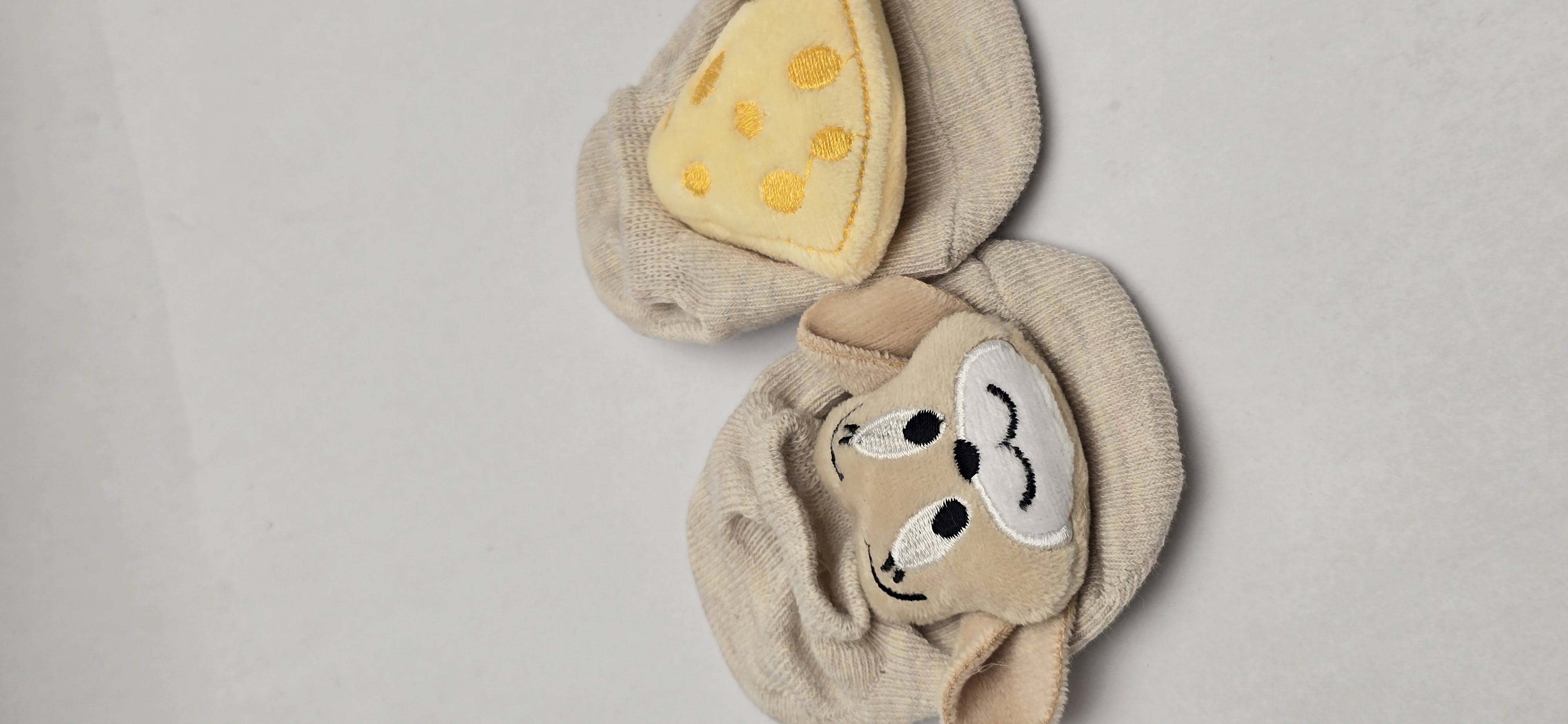 جوراب کالجی موش و پنیر در دو رنگ کرم و سفید پشت ژله ای که از پای کوچولو در نیاد کف استپ دار مناسب سایز 0تا 2سال